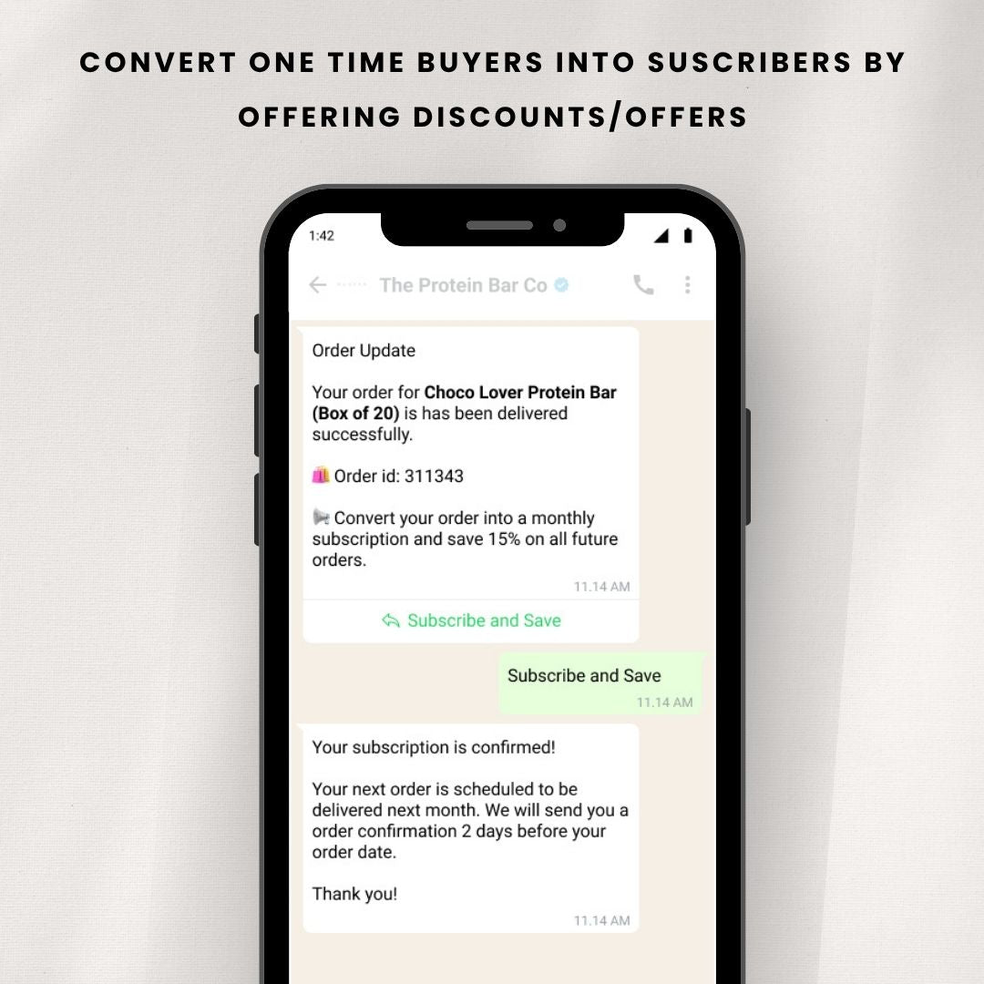 Turn one time buyers into loyal subscribers with powerful subscription tools built for fast growing brands. Keep subscriptions customers longer with smart order confirmations and personalized cancel flows. Use WhatsApp to keep your customer updated about every step of the journey. Scale faster with automated workflows & build an all in one native subscription experience.