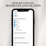 • Smart Filters & Segmentation: Choose customers by orders, spend, or behavior to target precisely